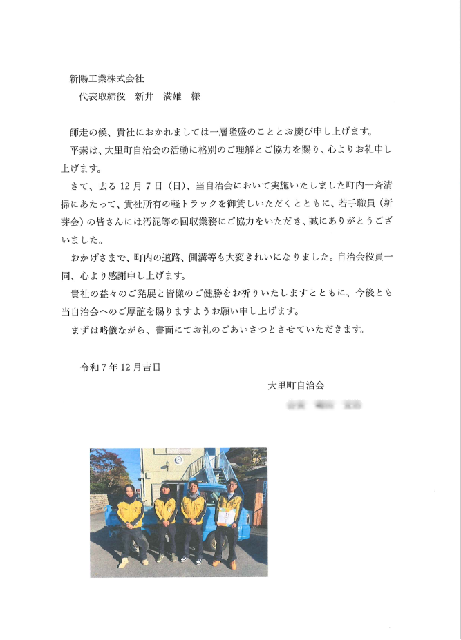 自治会長様、いつも温かいお礼状をいただき、ありがとうございます。