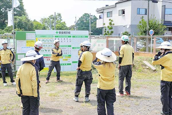 今⽇の作業内容を確認しあって、安全に作業できるよう打合せします。