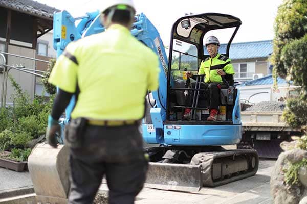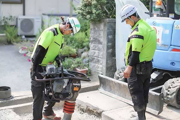 掘削した箇所を埋め戻していきます。丁寧にすくって掘削穴に入れていきます。