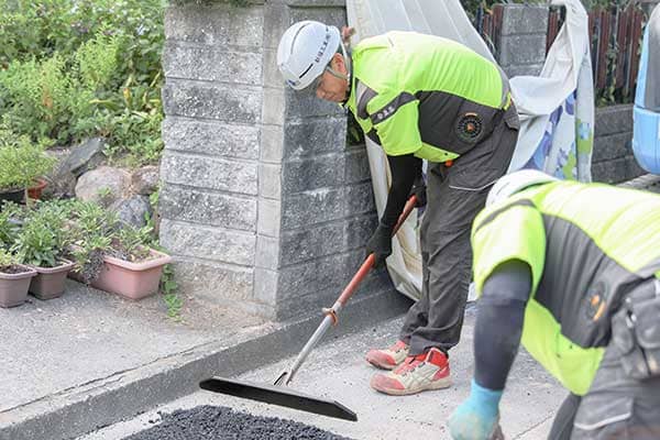 今⽇掘った所を埋めて、元通りの道路にします。